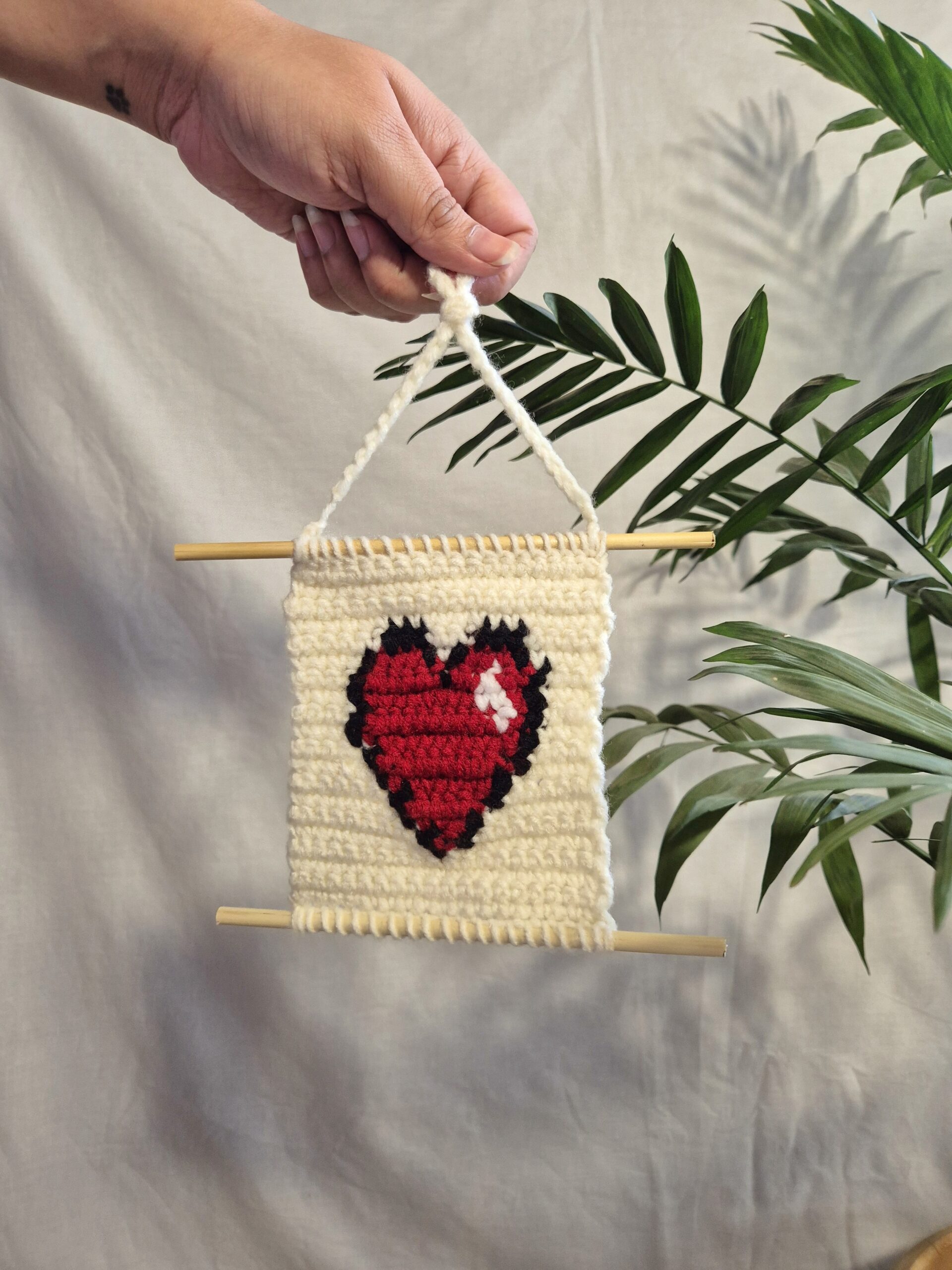 Add a touch of love to your space with our handmade crochet heart wall hanging.